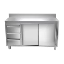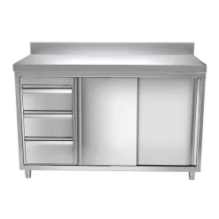 Edelstahl Arbeitsschrank PREMIUM – 1400x600mm – Mit 3 Schubladen Rechts & Aufkantung