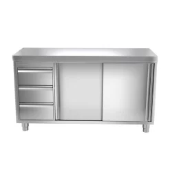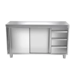 Edelstahl Arbeitsschrank PREMIUM – 1400x600mm – Mit 3 Schubladen Rechts Ohne Aufkantung