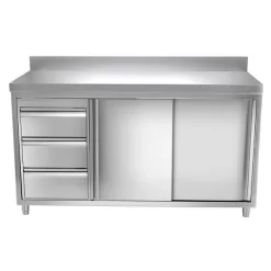Edelstahl Arbeitsschrank PREMIUM – 1600x600mm – Mit 3 Schubladen Rechts & Aufkantung